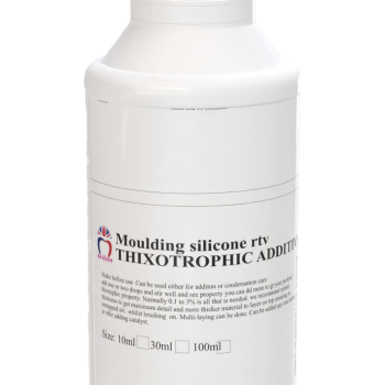 Silicone thickening liquid Silicone thickening liquid This product is suitable for both condensation/tin and addition/platinum silicones. It is a very potent thixotropic (thickening)  effect, typically in the range of 0.1-3% is required to get the desired consistency.  Consistency can range from viscous material for use with a brush or gel type for use with a spatula or hand. When used with tin/condensation cure silicone it can be added both before or after addition  of the catalyst. It is recommended you adjust the viscosity of silicone fluid before adding the catalyst so that pot life is not affected.  Intially unthickened material should be applied to mold taking care not to trap air. This will capture fine details of mold. Then more thickened material can be added to fill up mold. Ensure first layer is still wet before applying adding rest. .